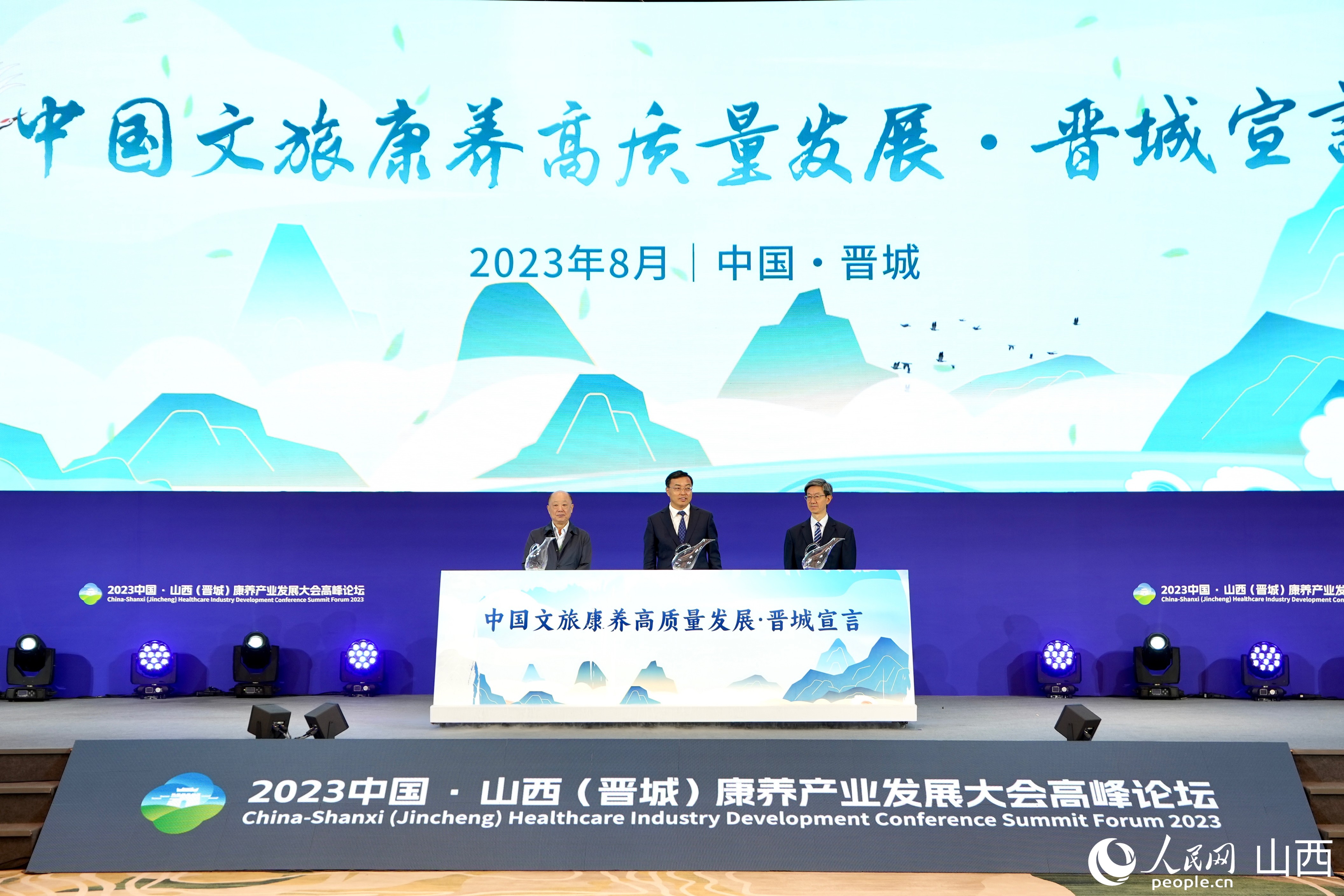 《中國文旅康養(yǎng)高質(zhì)量發(fā)展晉城宣言》在高峰論壇期間發(fā)布。人民網(wǎng) 盧鵬宇攝