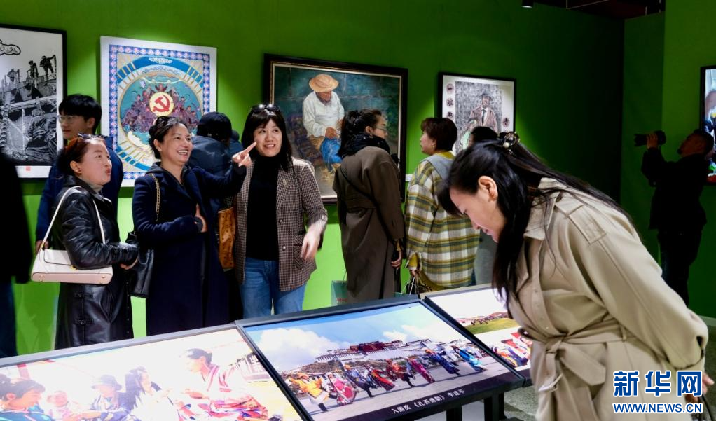 4月28日,第五屆民族團結書法、美術、攝影、微視頻大賽作品展現(xiàn)場。新華網(wǎng) 旦增努布 攝