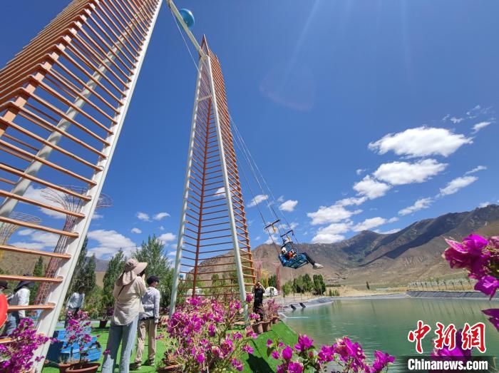 圖為游客在園區(qū)乘坐高空秋千。汪純 攝
