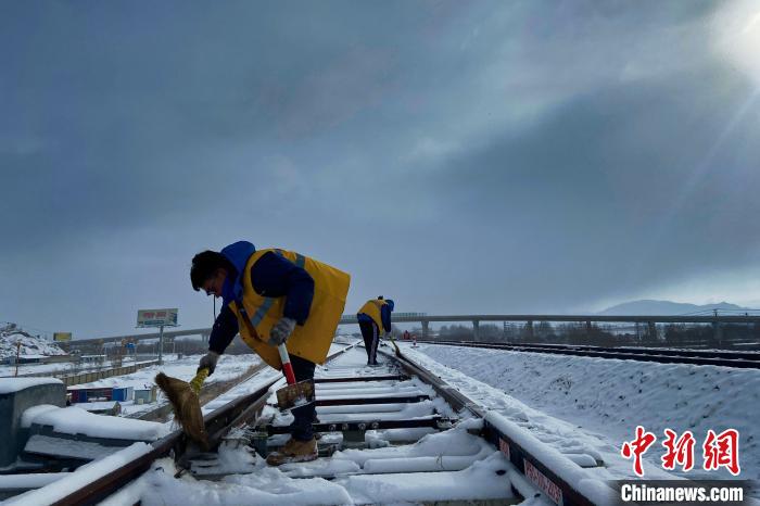 迎戰(zhàn)大雪 西藏日喀則鐵路職工清掃積雪保障拉日鐵路運營