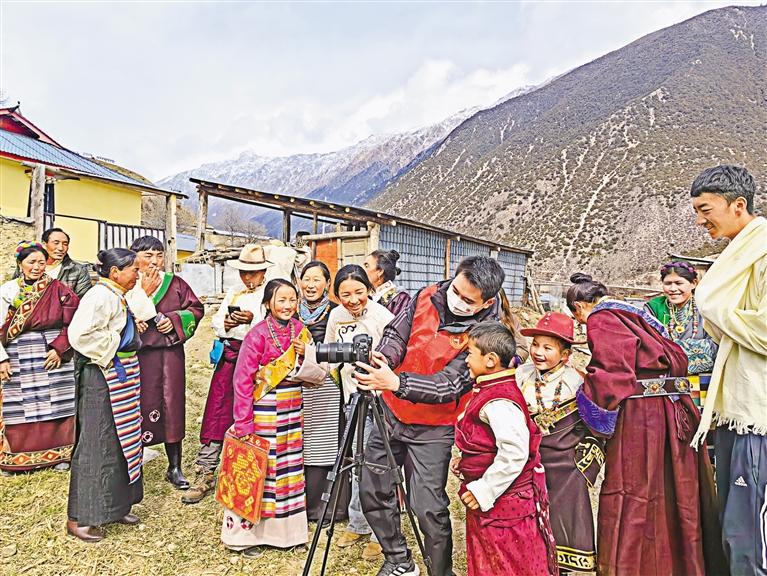攝影師在為古玉鄉(xiāng)一戶農(nóng)牧民家庭拍攝全家福。記者 謝筱純 王珊 攝