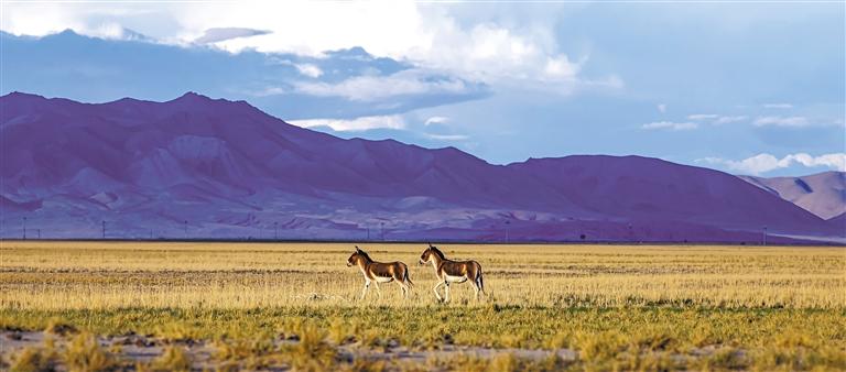 在羌塘國(guó)家級(jí)自然保護(hù)區(qū)內(nèi)行走的藏野驢。通訊員 邊巴多吉 攝