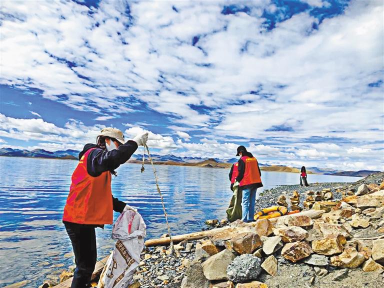 近日,山南市浪卡子縣組織干部群眾開(kāi)展“心系母親湖 共護(hù)生態(tài)家園”主題環(huán)保活動(dòng),清理羊湖沿岸、河道溝渠等區(qū)域的垃圾,以實(shí)際行動(dòng)守護(hù)良好的自然生態(tài)。