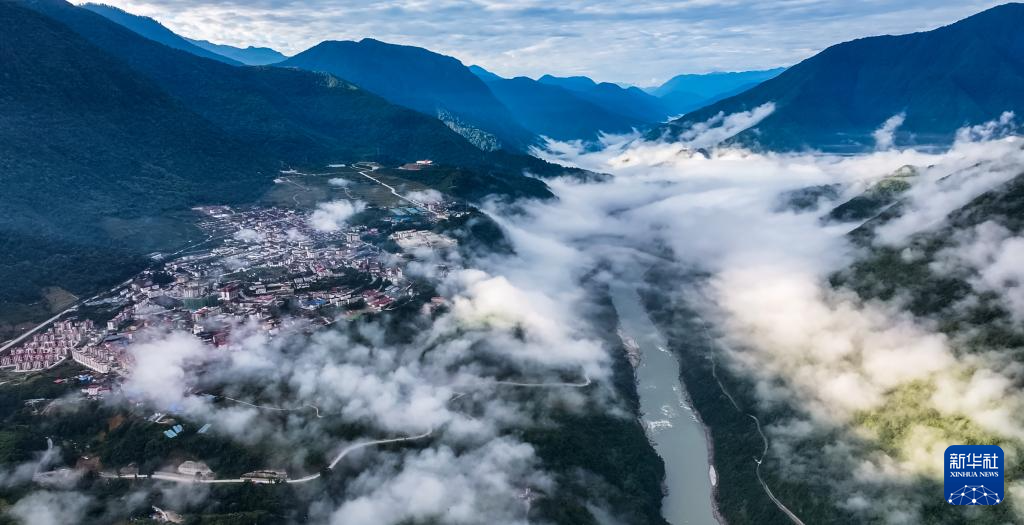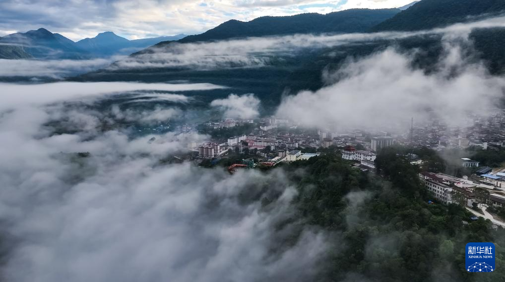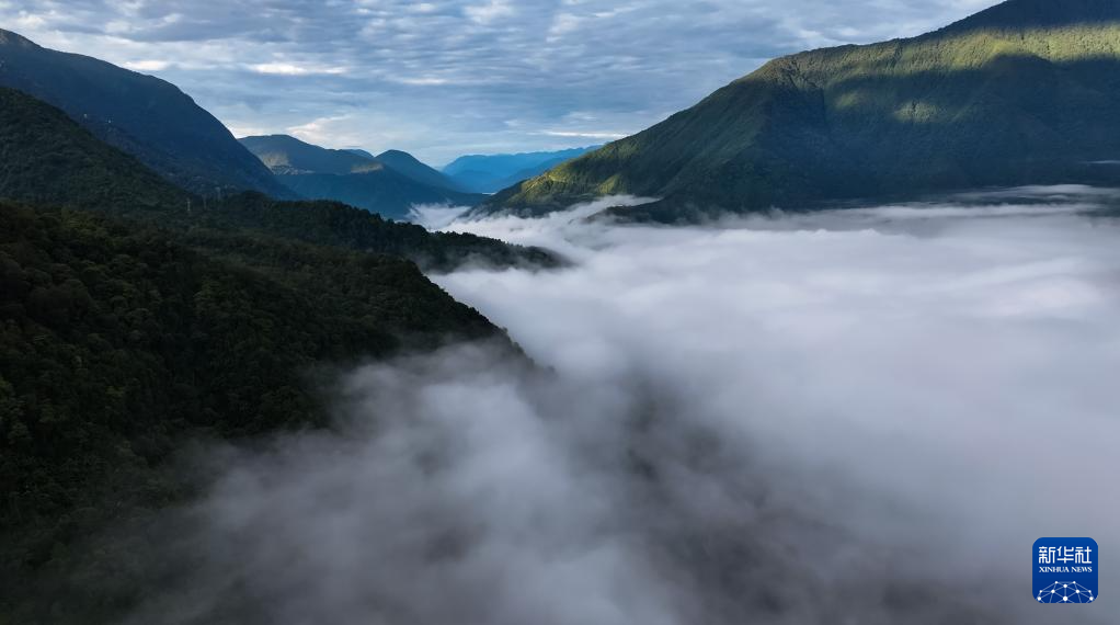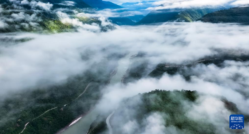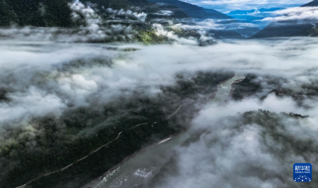 這是11月11日拍攝的墨脫縣云海景觀(無人機照片)。新華社記者 普布次仁 攝