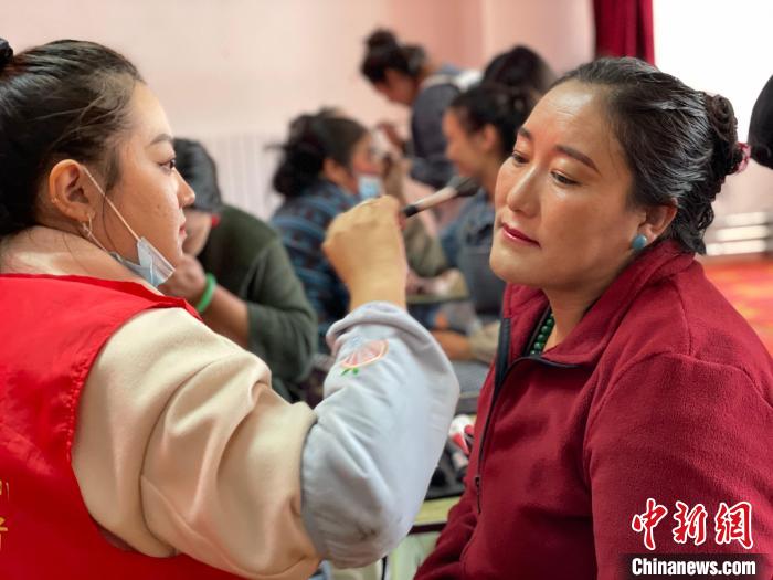 圖為正在接受化妝培訓的搬遷戶。 謝牧 攝