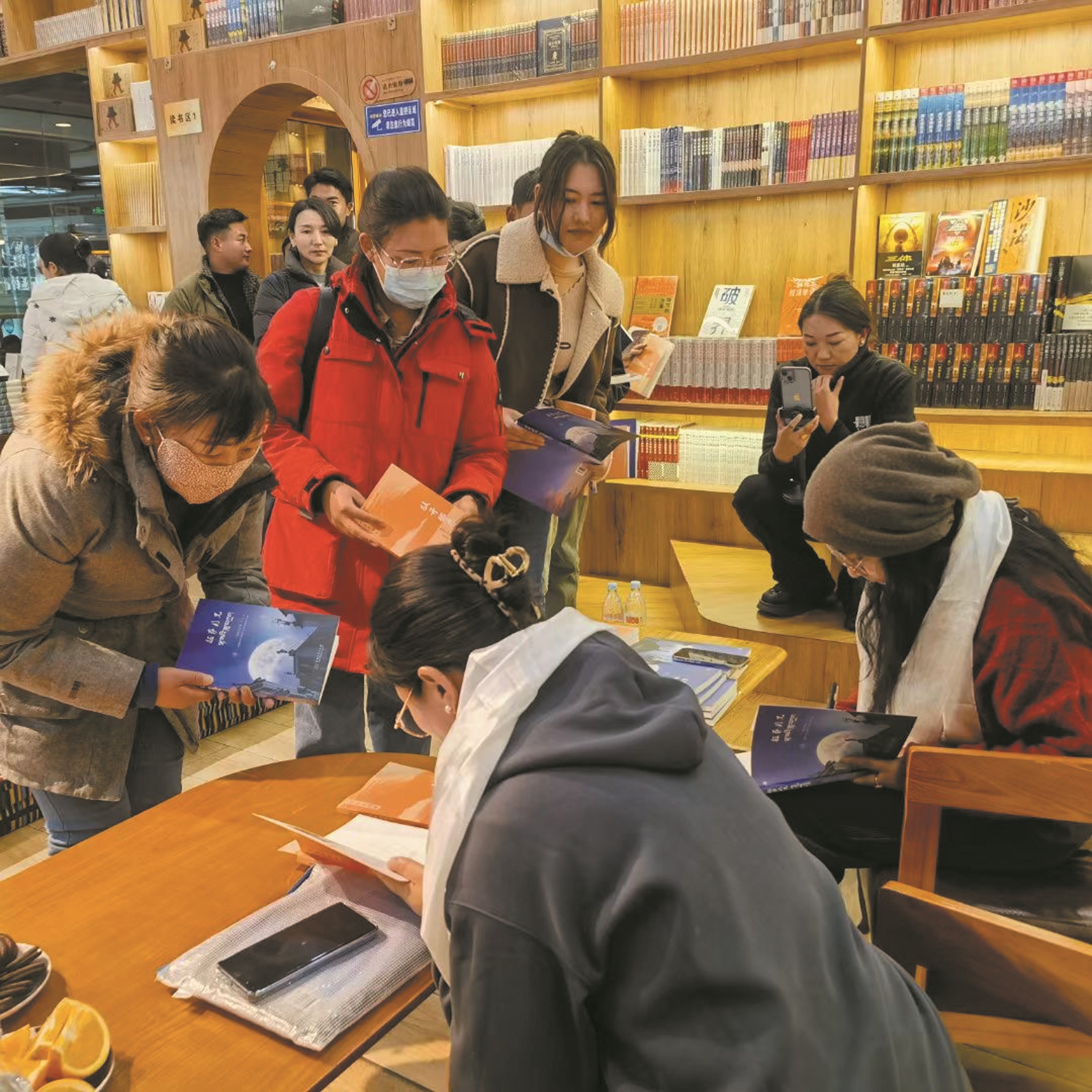 圖為在讀書分享交流會(huì)現(xiàn)場(chǎng),作家納穆卓瑪與達(dá)娃央金在為讀者簽名。 拉薩融媒記者 滿文妍攝