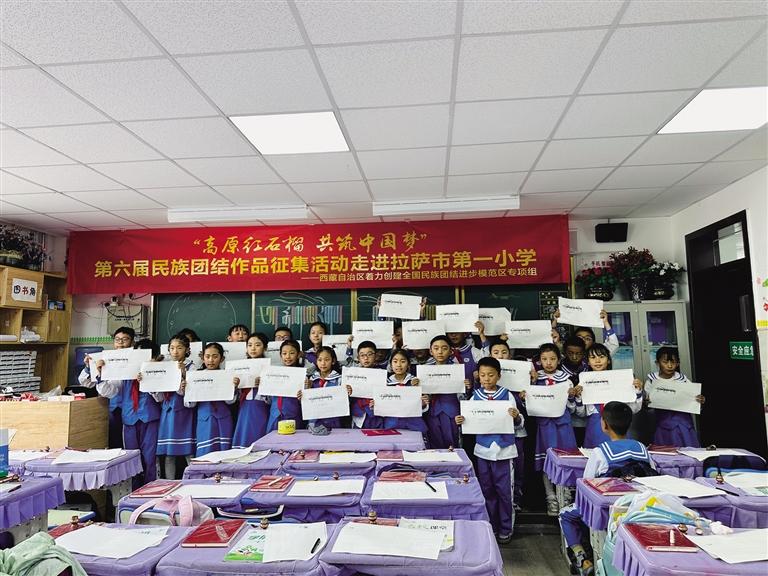 為進(jìn)一步豐富第六屆民族團(tuán)結(jié)書法、美術(shù)、攝影、微視頻作品征集活動的內(nèi)容和形式,弘揚(yáng)傳統(tǒng)文化,激發(fā)學(xué)生對書法藝術(shù)的熱愛之情,7月5日下午,由西藏自治區(qū)著力創(chuàng)建全國民族團(tuán)結(jié)進(jìn)步模范區(qū)專項(xiàng)組主辦,西藏自治區(qū)黨委宣傳部、西藏自治區(qū)民族事務(wù)委員會協(xié)辦,西藏傳媒集團(tuán)有限公司承辦的第六屆民族團(tuán)結(jié)書法、美術(shù)、攝影、微視頻作品征集活動走進(jìn)拉薩市第一小學(xué),為同學(xué)們帶來了一堂生動的藏文書法課。