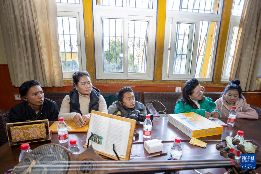 西藏拓崗文化傳播有限公司主播邊桑在直播銷售西藏傳統(tǒng)樂器扎念琴(11月10日攝)。新華社記者 姜帆 攝