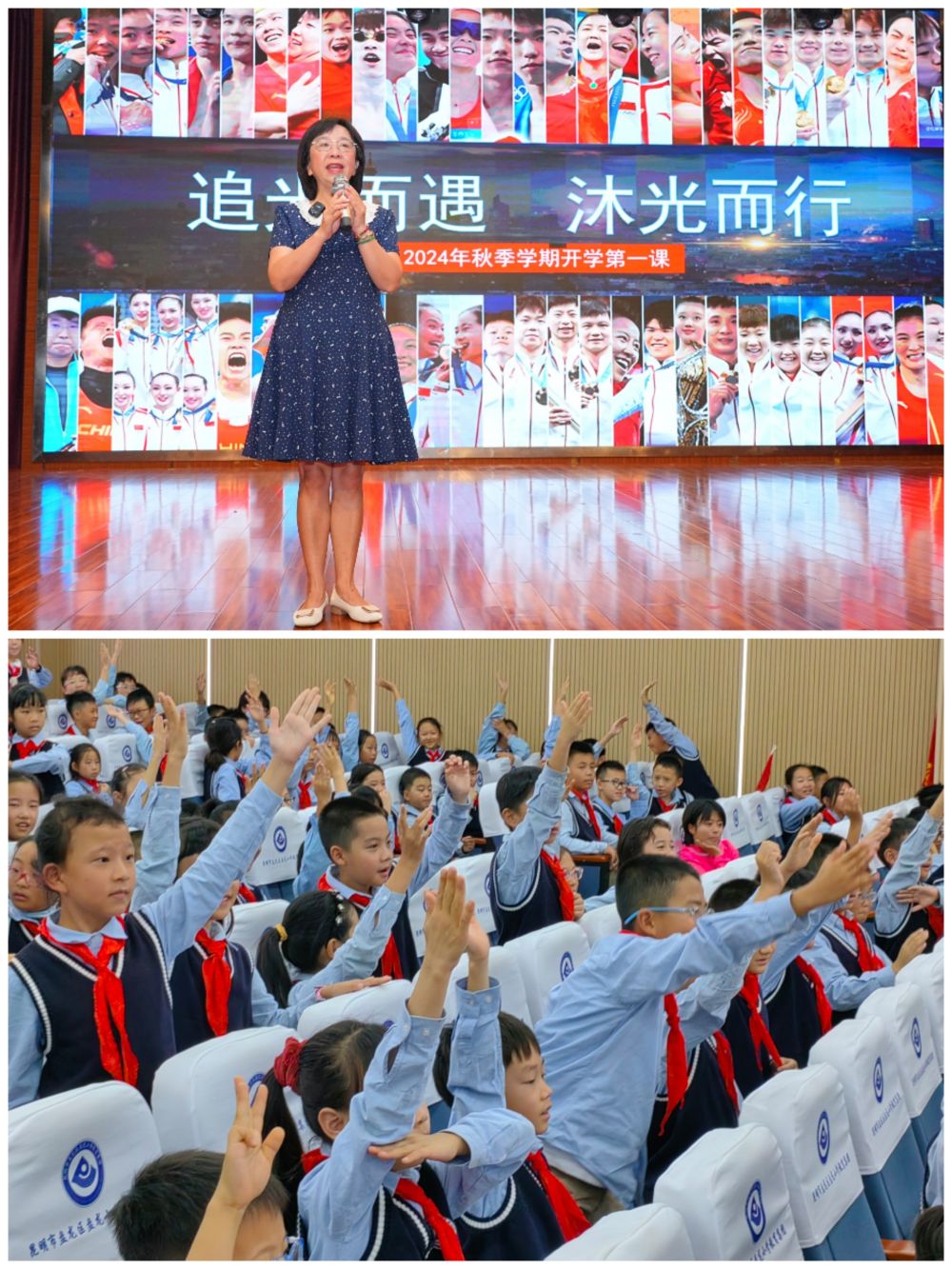 在昆明市盤龍小學(xué)教育集團的開學(xué)第一課上,黨委書記高輝帶著大家重溫奧運燃情時刻,讓孩子們思考怎樣成為新時代好少年。三年級的唐子堯說:“當(dāng)看到男子4×100米混合泳接力決賽,中國隊?wèi)?zhàn)勝美國隊獲得金牌,我激動得都哭了。”