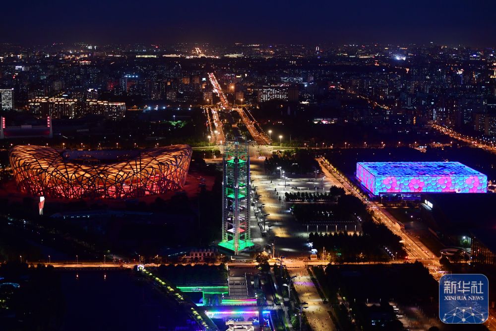 這是2022年6月23日拍攝的國家體育場(左)與國家游泳中心夜景。作為“雙奧之城”的標(biāo)志性場館群“冰絲帶”、“鳥巢”、“冰立方”聯(lián)動亮燈,共同傳遞奧林匹克精神,號召民眾用運(yùn)動點(diǎn)亮健康生活,創(chuàng)造美好未來。 新華社記者 張晨霖 攝