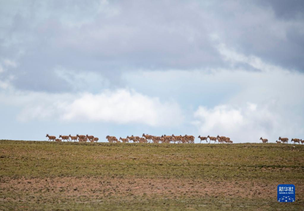 這是在羌塘國家級自然保護(hù)區(qū)內(nèi)拍攝的藏羚羊(7月11日攝)。新華社記者 周荻瀟 攝