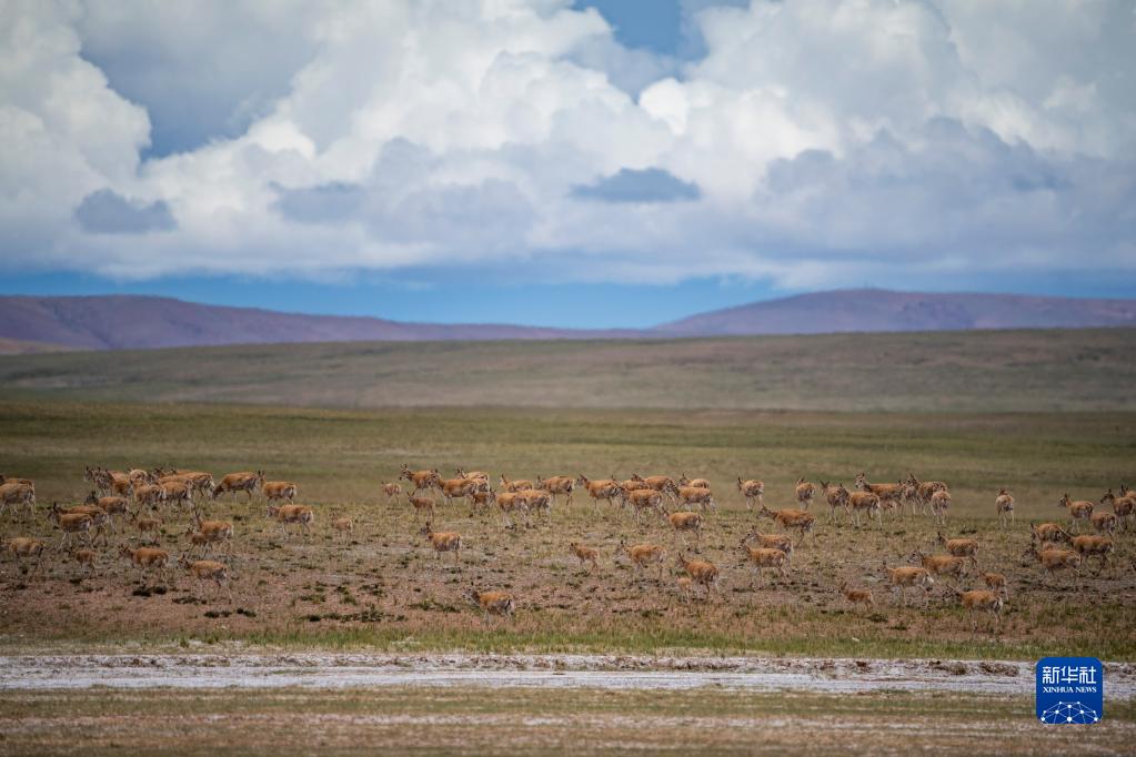 這是在羌塘國家級自然保護(hù)區(qū)內(nèi)拍攝的藏羚羊(7月11日攝)。新華社記者 晉美多吉 攝