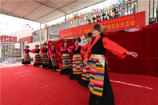 中國(guó)西藏網(wǎng)訊 日前,西藏山南市瓊結(jié)縣加麻鄉(xiāng)文藝宣傳隊(duì)和金珠村的村民們舉辦了一場(chǎng)慶?!?.28”西藏百萬(wàn)農(nóng)奴解放紀(jì)念日活動(dòng)。