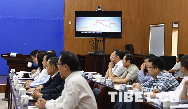 圖為:現(xiàn)場(chǎng)播放的藏中聯(lián)網(wǎng)工程宣傳片。攝影:王媛媛