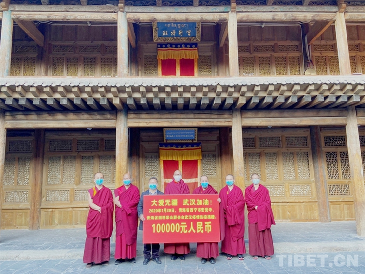 圖為青海省宏覺寺及青海省因明學(xué)會為武漢災(zāi)區(qū)捐贈(zèng)10萬元人民幣
