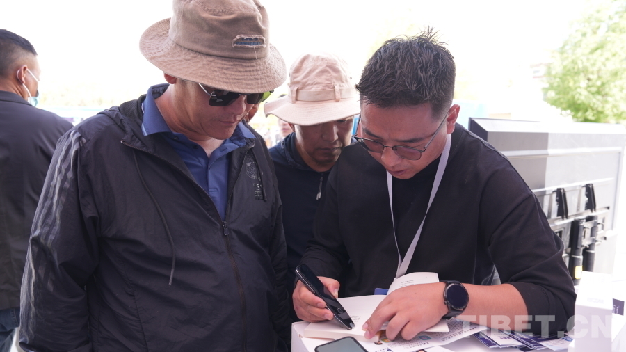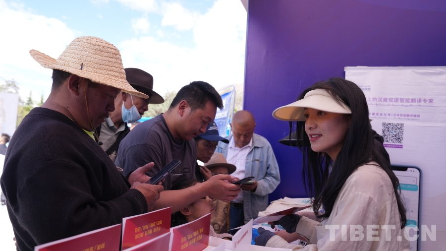 “叔叔阿姨,我們這個(gè)軟件可以掃這個(gè)二維碼下載,也可以在小程序上搜索,這個(gè)軟件在您日常生活中用處很大,來!我教您怎么使用。”西藏高弛信息技術(shù)服務(wù)有限責(zé)任公司的數(shù)字技術(shù)應(yīng)用體驗(yàn)展旁,圍著很多人,工作人員邊給大家發(fā)放宣傳資料,邊耐心地講解“藏譯通”藏漢雙語智能翻譯軟件的各大功能和使用方法。