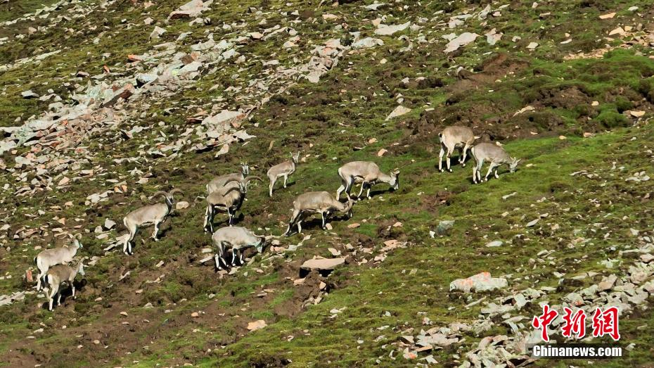 高原深秋,在青海湖北岸的青海省海北藏族自治州海晏縣甘子河鄉(xiāng)境內(nèi),攝影師拍攝到成群巖羊在溫泉濕地游走覓食。畫面中,巖羊“拖家?guī)Э凇痹谏狡律?、風(fēng)雪中奔跑覓食,甚是靈動(dòng)。據(jù)悉,拍攝到成群巖羊的區(qū)域有一處熱水溫泉,溫泉四季噴涌不竭,水溫達(dá)57到60度,所以當(dāng)?shù)匦纬商赜械男夂?,讓深秋時(shí)的草原依然青綠。巖羊是國家二級保護(hù)動(dòng)物,擅長“飛檐走壁”,在地形復(fù)雜的山崖上也能如履平地,青灰色的毛色與巖石顏色極為相近,不易察覺。