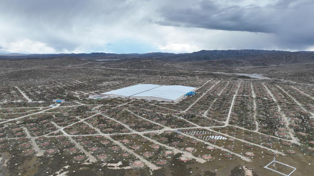 這是位于四川省稻城縣的高海拔宇宙線觀測站“拉索”(無人機照片)。新華社記者 薛晨 攝