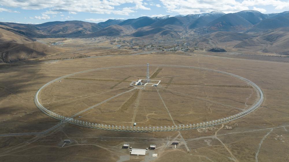 若從天空中鳥瞰,海拔四千多米的“巨石陣”中藏著一個巨大的“圓盤”——高海拔宇宙線觀測站“拉索”(LHAASO)。宇宙線是來自宇宙空間的高能粒子,被科學家稱為傳遞宇宙大事件的“信使”。
