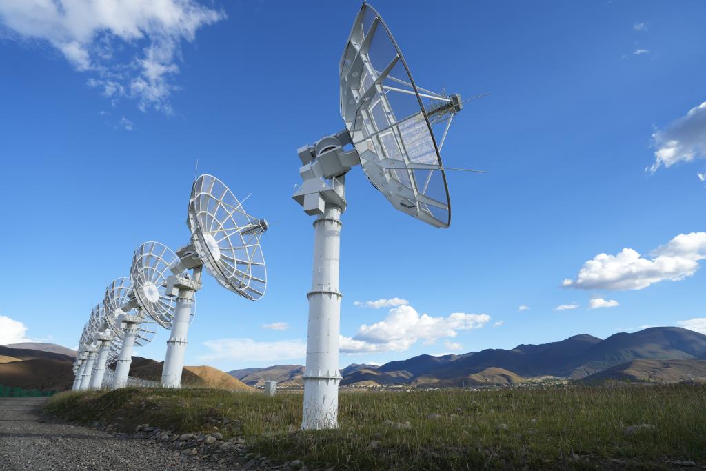 這是在圓環(huán)陣太陽射電成像望遠鏡拍攝的觀測運行中的天線。新華社記者 薛晨 攝