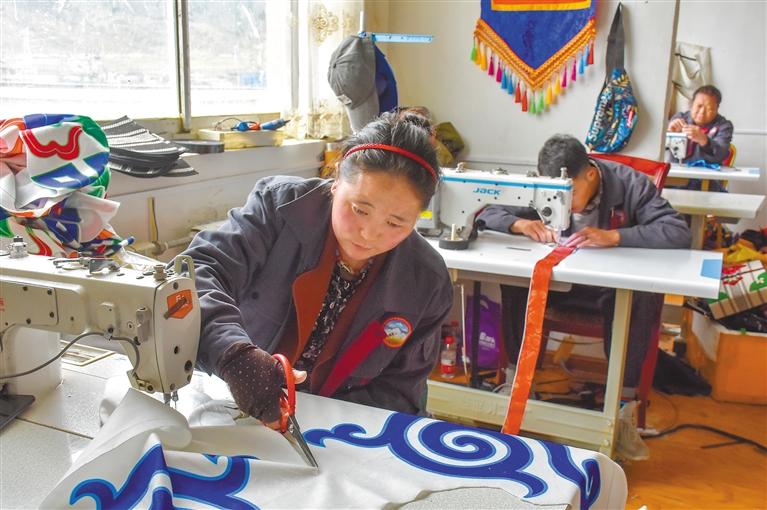 圖為“雙創(chuàng)”孵化基地的格拉夏手工業(yè)有限責任公司員工在制作帳篷。劉楓 攝