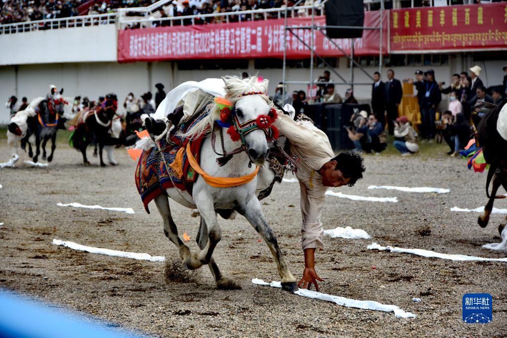 8月10日,騎手進行馬術表演。新華社發(fā)(旦增努布攝)