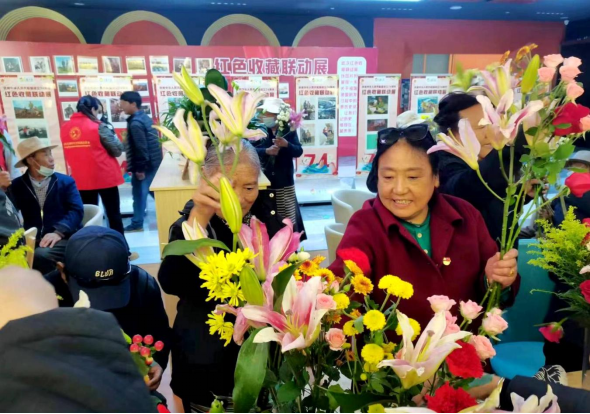 圖為城關(guān)區(qū)桑伊社區(qū)開展重陽(yáng)節(jié)敬老活動(dòng)。??