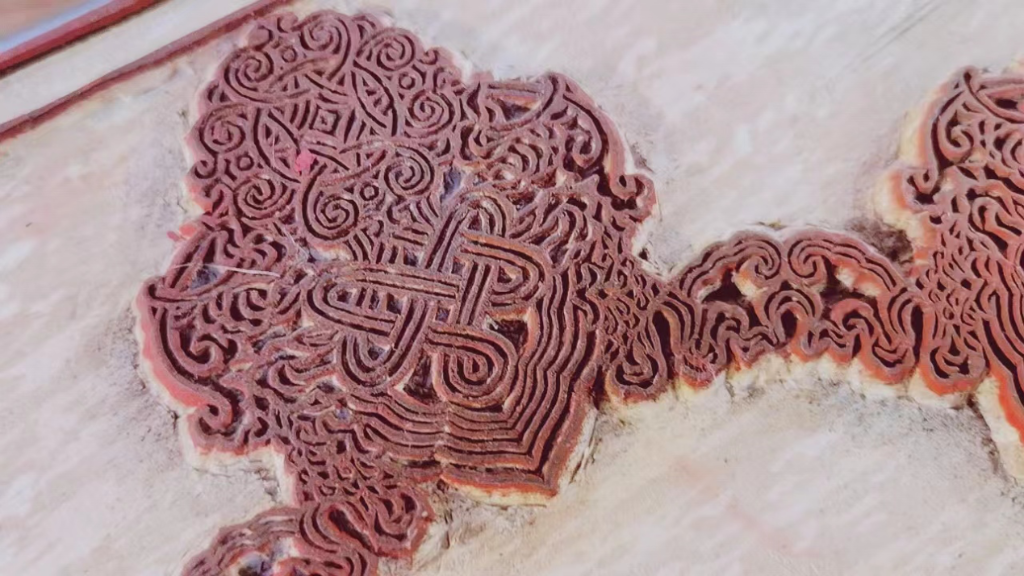 雕版印刷從內地傳入西藏已有近千年歷史。饕餮、龍鳳、雙魚、長城紋、萬字紋等中華民族的共同元素符號,在雕版上隨處可見。細心觀察可見,一些裝飾紋樣的花邊被古人設計成迷宮,經過一番摸索可以走通。
