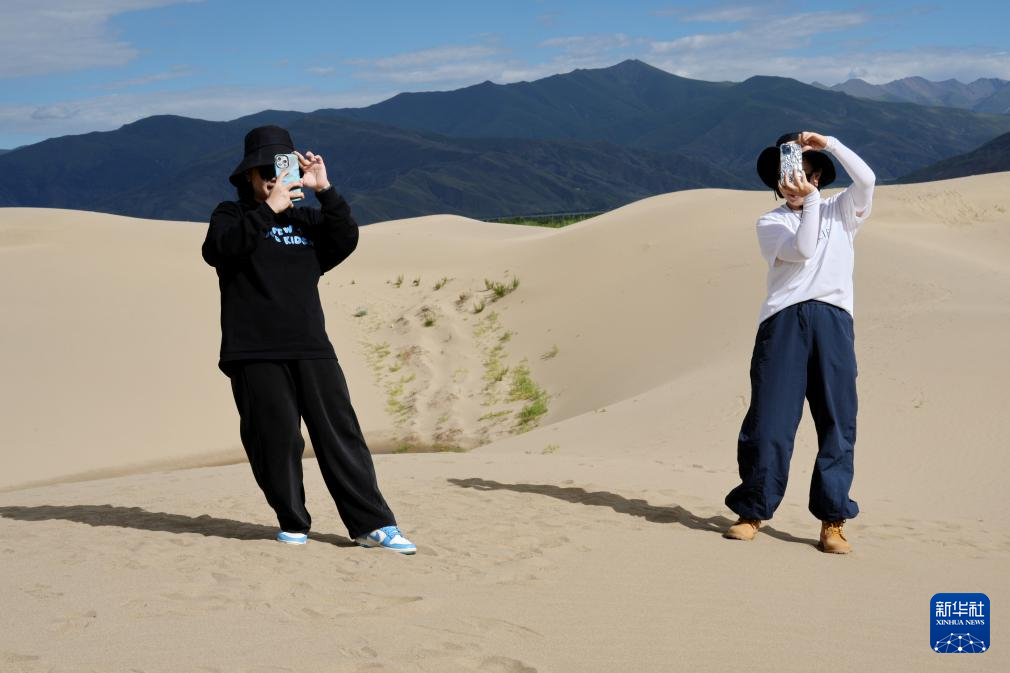 游客在扎囊國家沙漠公園游玩(7月30日攝)。新華社記者 張汝鋒 攝