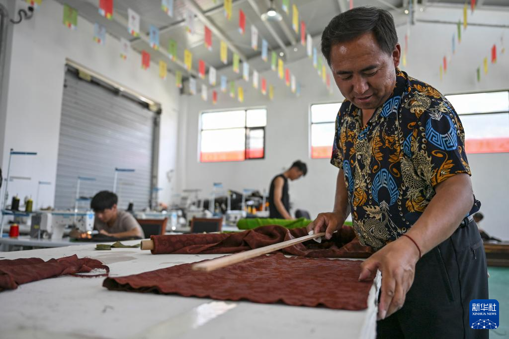9月1日,在西藏日喀則市仁布縣特色產(chǎn)業(yè)孵化園,亞德細(xì)褐羊毛織品農(nóng)民專業(yè)合作社工作人員在車間里準(zhǔn)備剪裁布匹。新華社記者 孫瑞博 攝