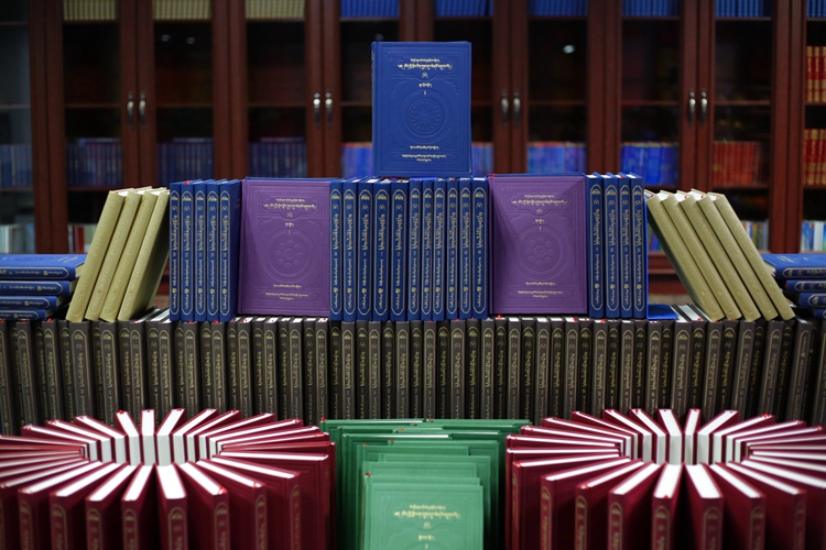 在旦正加看來(lái),民族出版社的成立是藏文化從語(yǔ)言文字層面現(xiàn)代化發(fā)展的開(kāi)端。新中國(guó)成立之前,藏文出版機(jī)構(gòu)大都以整理印刻經(jīng)文為主。新中國(guó)成立后,隨著人們精神文化需求的不斷提升,藏文出版內(nèi)容從過(guò)去單一的佛經(jīng)刻印,發(fā)展到新時(shí)期的空前豐富,如《中國(guó)人民政治協(xié)商會(huì)議共同綱領(lǐng)》《中華人民共和國(guó)憲法》等法律文件;《毛澤東文集》《習(xí)近平談治國(guó)理政》等領(lǐng)袖著作;黨代會(huì)和兩會(huì)產(chǎn)生的各類(lèi)時(shí)政類(lèi)圖書(shū);《藏醫(yī)藥大典》《中華大藏經(jīng)》等傳統(tǒng)文化精品圖書(shū);《漢藏對(duì)照辭典》《藏漢大辭典》等工具性圖書(shū);還有新時(shí)期各類(lèi)藏學(xué)研究著作等等。
