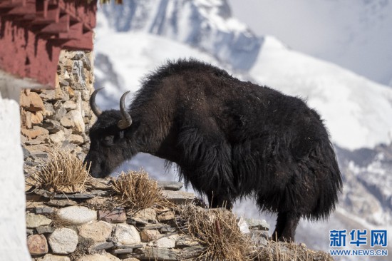 5月13日,棲息在珠穆朗瑪峰游客大本營(yíng)附近的牦牛。 新華網(wǎng) 旦增努布 攝