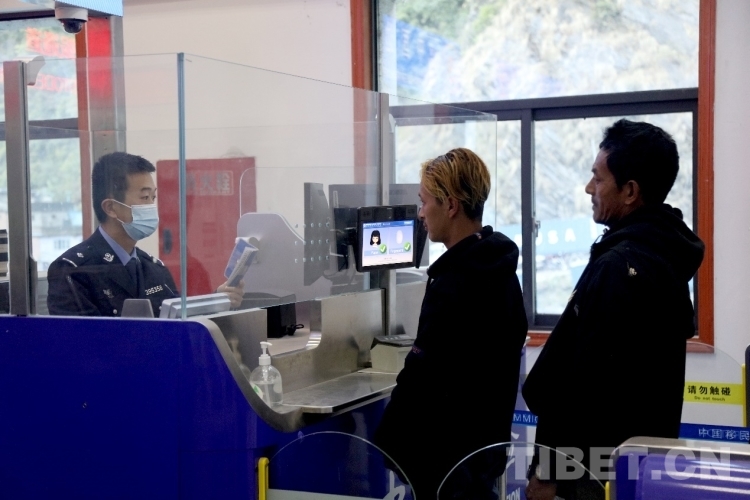 圖為聶拉木邊檢站民警對(duì)出入境人員進(jìn)行驗(yàn)放 攝影:鄒興國