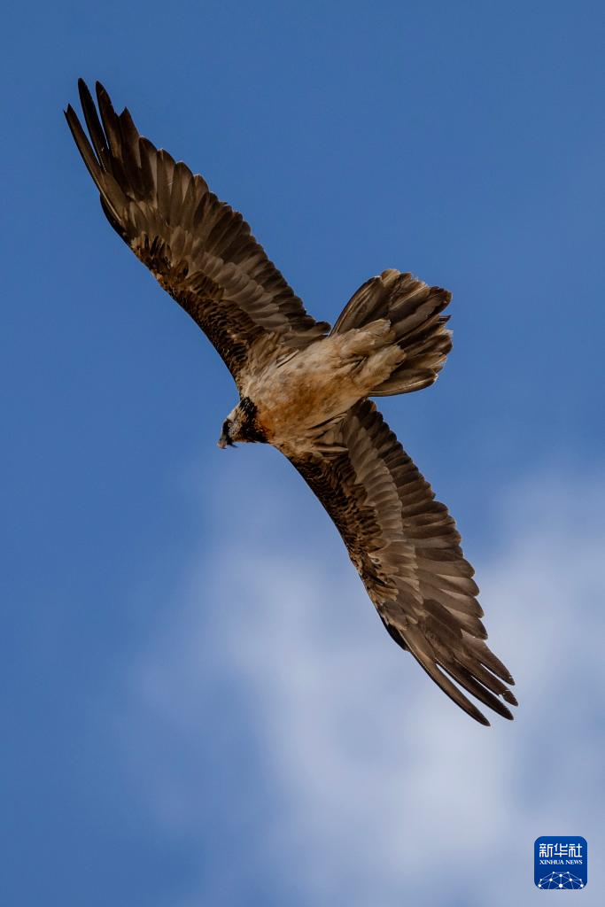 這是在西藏那曲市尼瑪縣境內(nèi)的羌塘國家級自然保護(hù)區(qū)核心區(qū)拍攝的胡兀鷲(5月10日攝)。新華社記者 姜帆 攝 ??