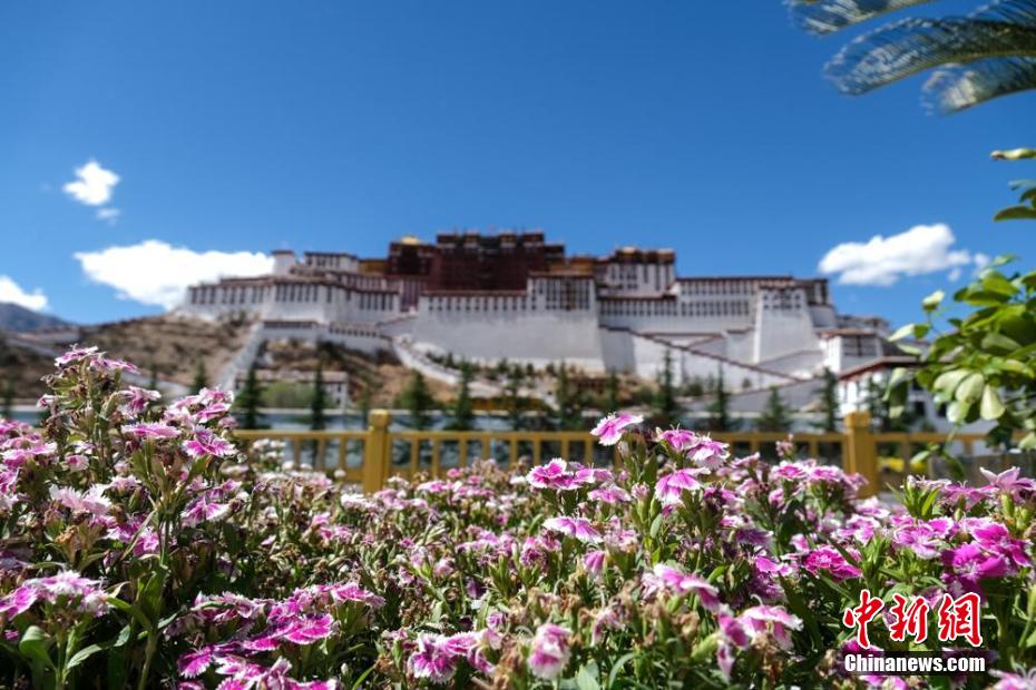 布達拉宮位于西藏自治區(qū)拉薩市紅山上,是一座古代宮堡式建筑群。布達拉宮先后被國務院公布為第一批全國重點文物保護單位,被聯(lián)合國教科文組織公布為世界遺產名錄。近日,高原入夏,布達拉宮周邊繁花盛開、綠柳成蔭,藍天白云下更顯秀麗。圖為5月28日,夏日鮮花與布達拉宮。
