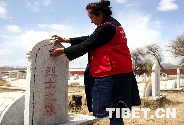 在肅穆寧?kù)o的拉薩烈士陵園內(nèi)也有很多不知不知已在此長(zhǎng)眠了多少年的無名烈士。讓人欣慰的是,每年清明時(shí)節(jié)都有人來為他們進(jìn)行祭掃。扎西新村社區(qū)副主任張艷說:“扎西新村社區(qū)的志愿者們每年都會(huì)自發(fā)前來為陵園內(nèi)的無名烈士們祭掃,讓無名英雄們不孤單?!保ㄖ袊?guó)西藏網(wǎng) 圖、文/賈華加)